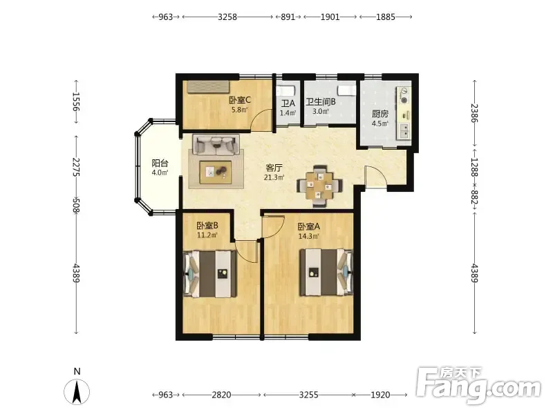 3室2厅1卫