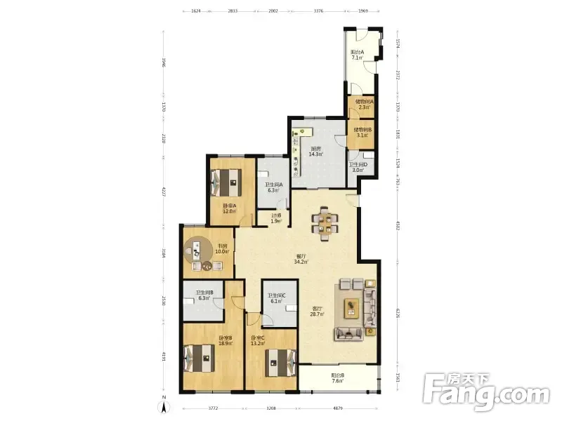 房屋拥有相对宽松的尺寸,布局通透,动静分离,设计豪华