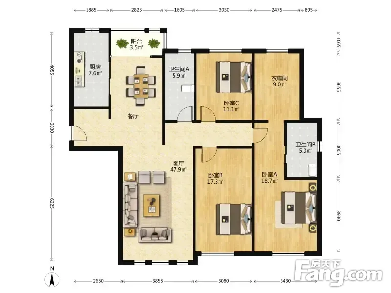 3室2厅1卫