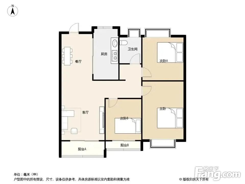 户型齐全,主打全明格局,户型方正三居