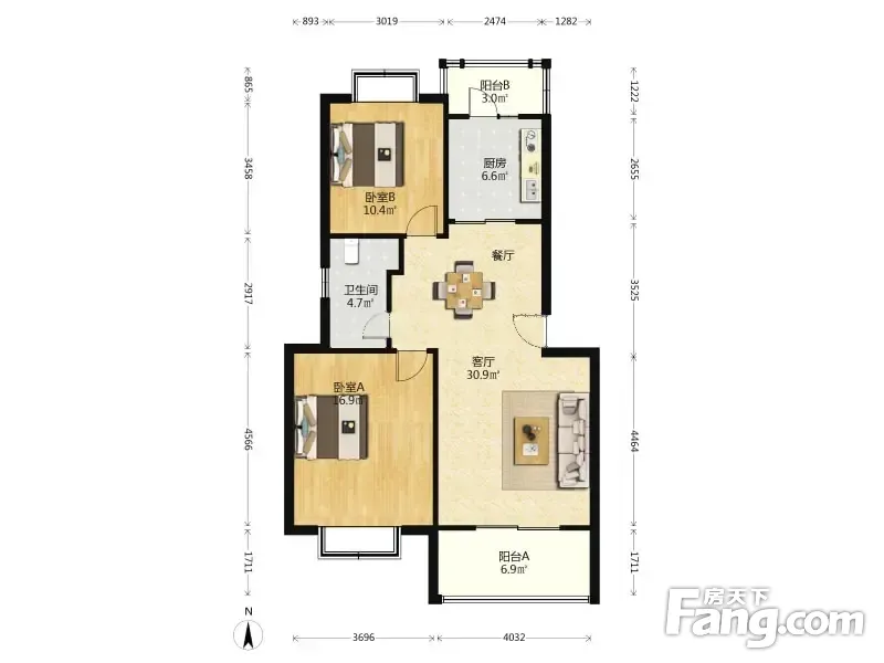 东方丽都 2室2厅 98.66平
