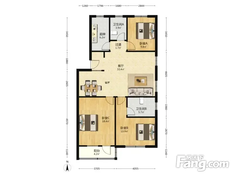 户型齐全,主打户型方正,明卫,明厨,客厅朝南三居