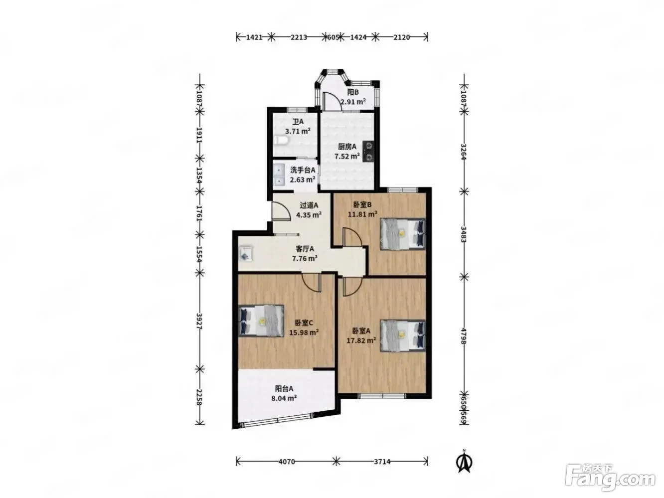 户型齐全,主打明厨,明卫,双阳台,主卧朝南三居