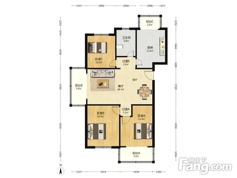 3室2厅1卫