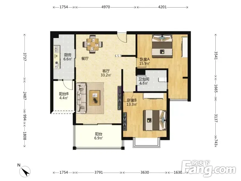 户型齐全,主打南北通透,户型方正四居