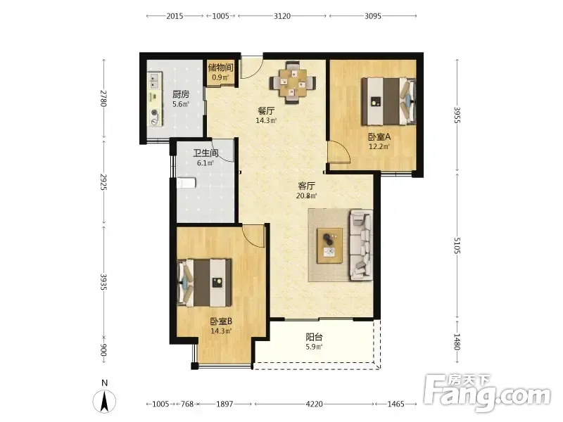 凯润金城 2室2厅 107.93平