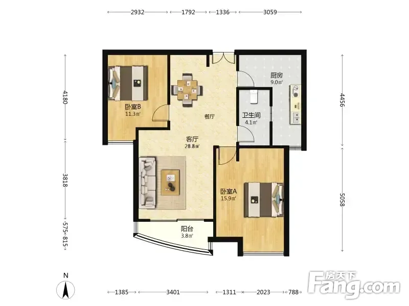 户型齐全,主打户型方正,明卫,明厨,客厅朝南二居