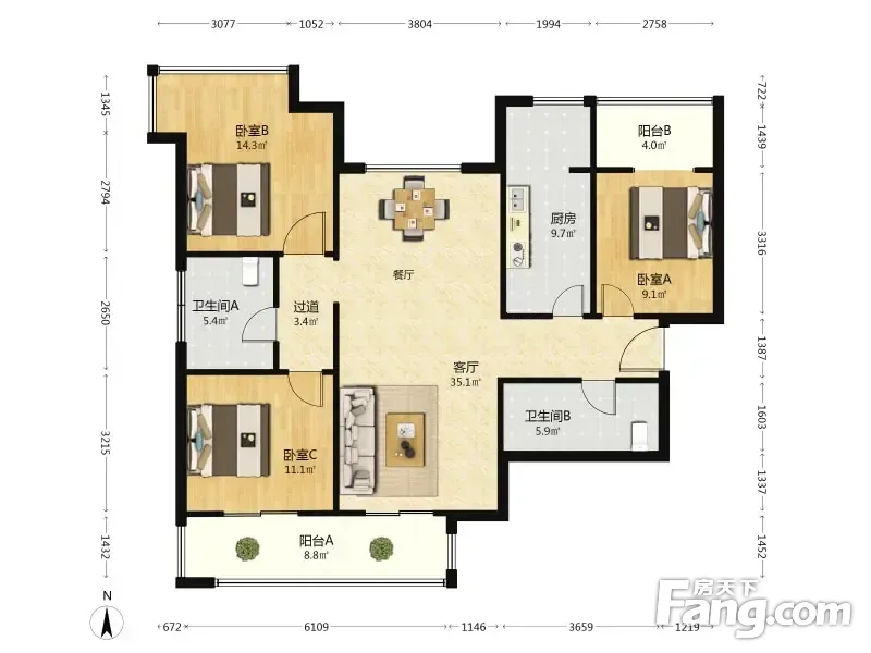 大运盛城 3室2厅 135.61平