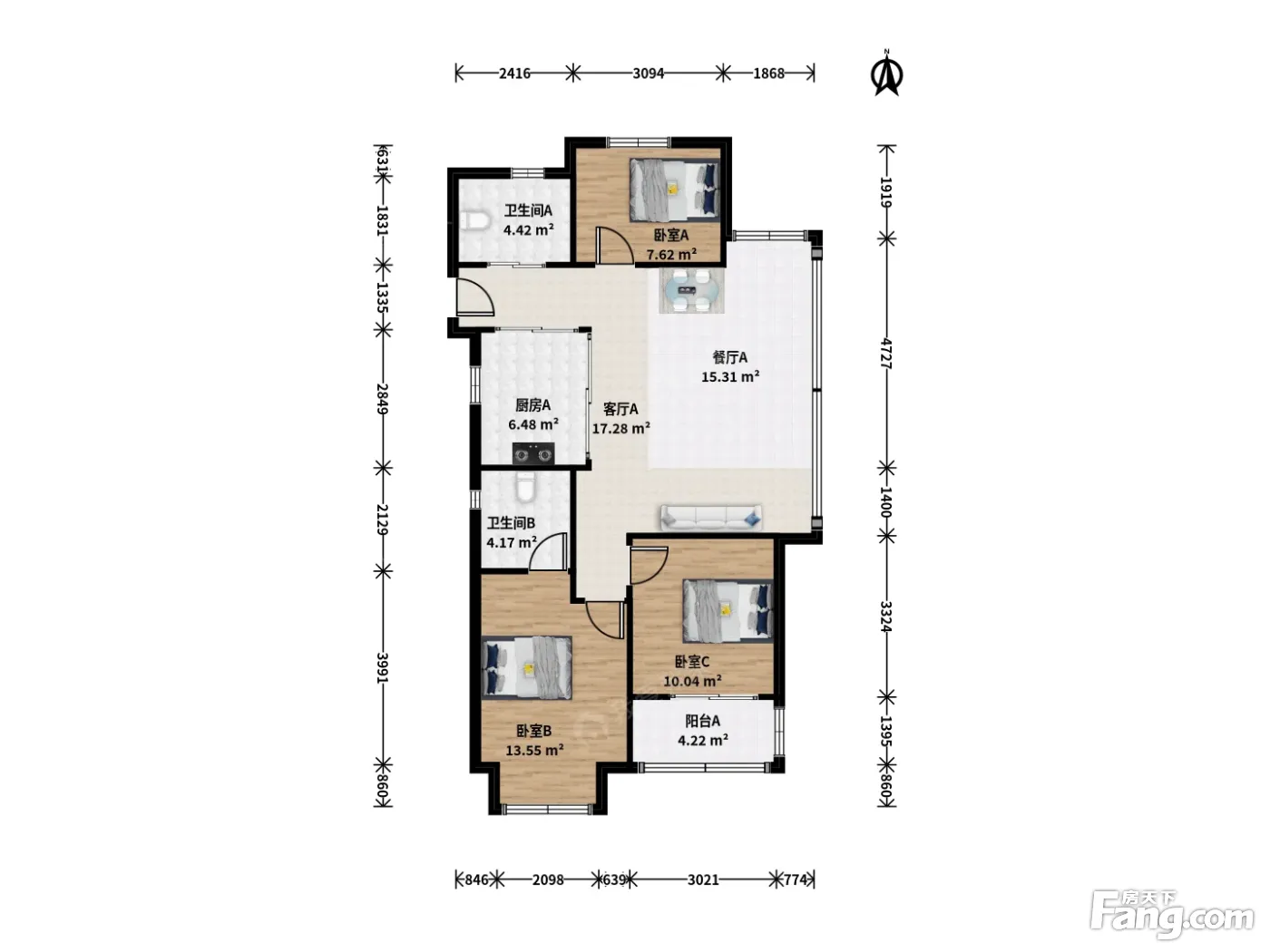 户型齐全,主打南北通透,全明格局,户型方正三居