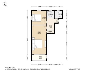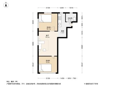 俞一小区 2室1厅 56.78平