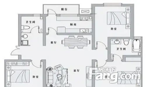 户型齐全,主打户型方正,明厨,双阳台三居