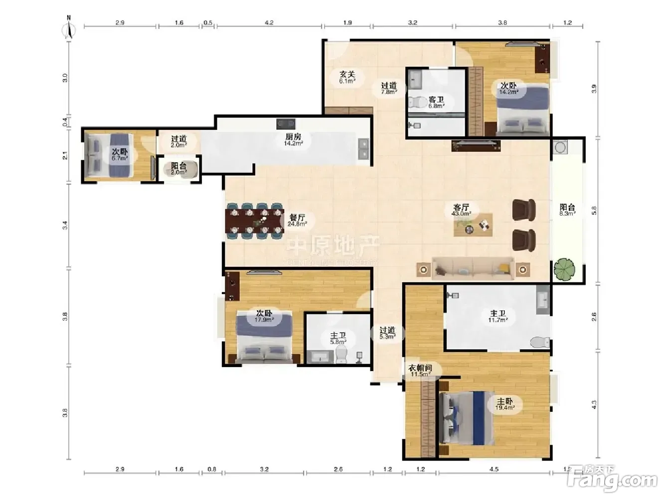 户型齐全,主打户型方正,明卫,独立衣帽间,双卧朝南,主卧朝南三居