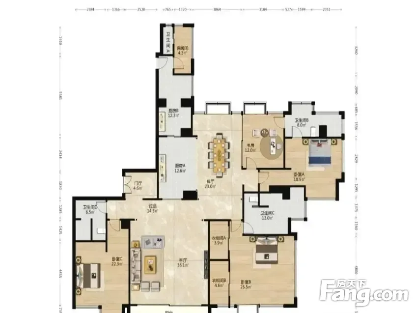 房屋拥有相对宽松的尺寸,布局通透,动静分离,设计豪华