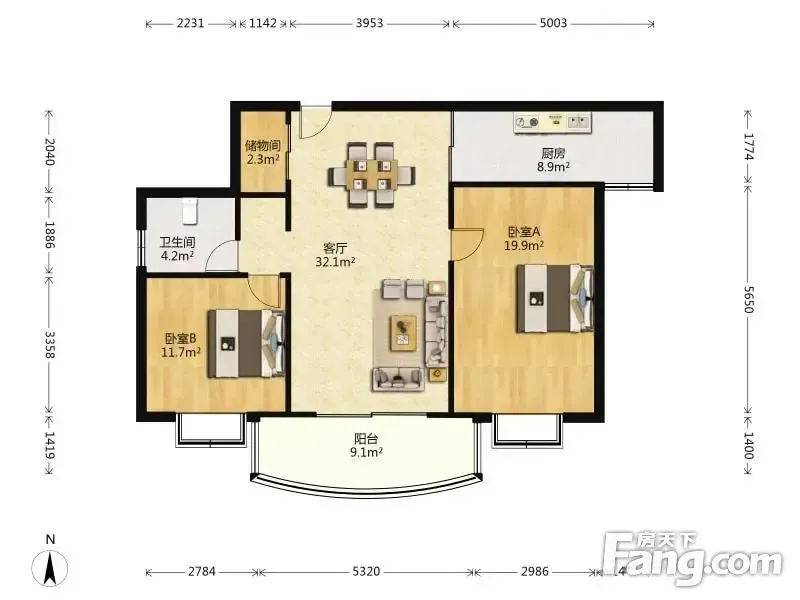 户型齐全,主打双阳台,主卧朝南二居
