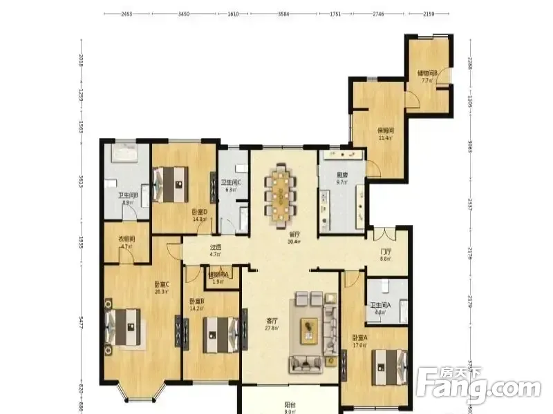 房屋拥有相对宽松的尺寸,布局通透,动静分离,设计豪华