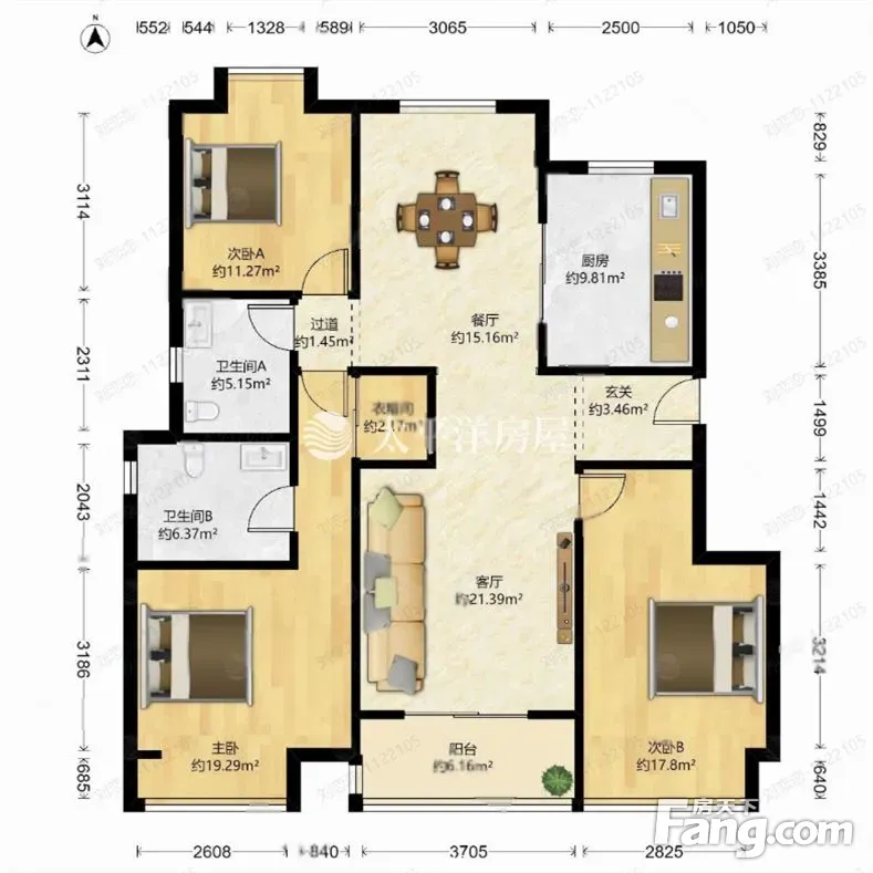 户型齐全,主打南北通透,客厅朝南,卧室朝南三居