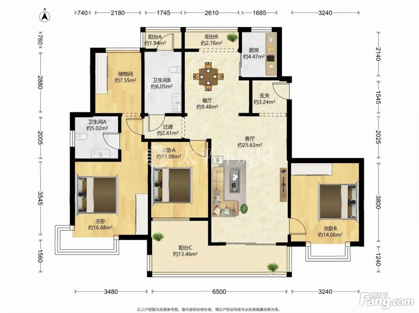 户型齐全,主打户型方正,明厨,明卫,双卧朝南,主卧朝南三居