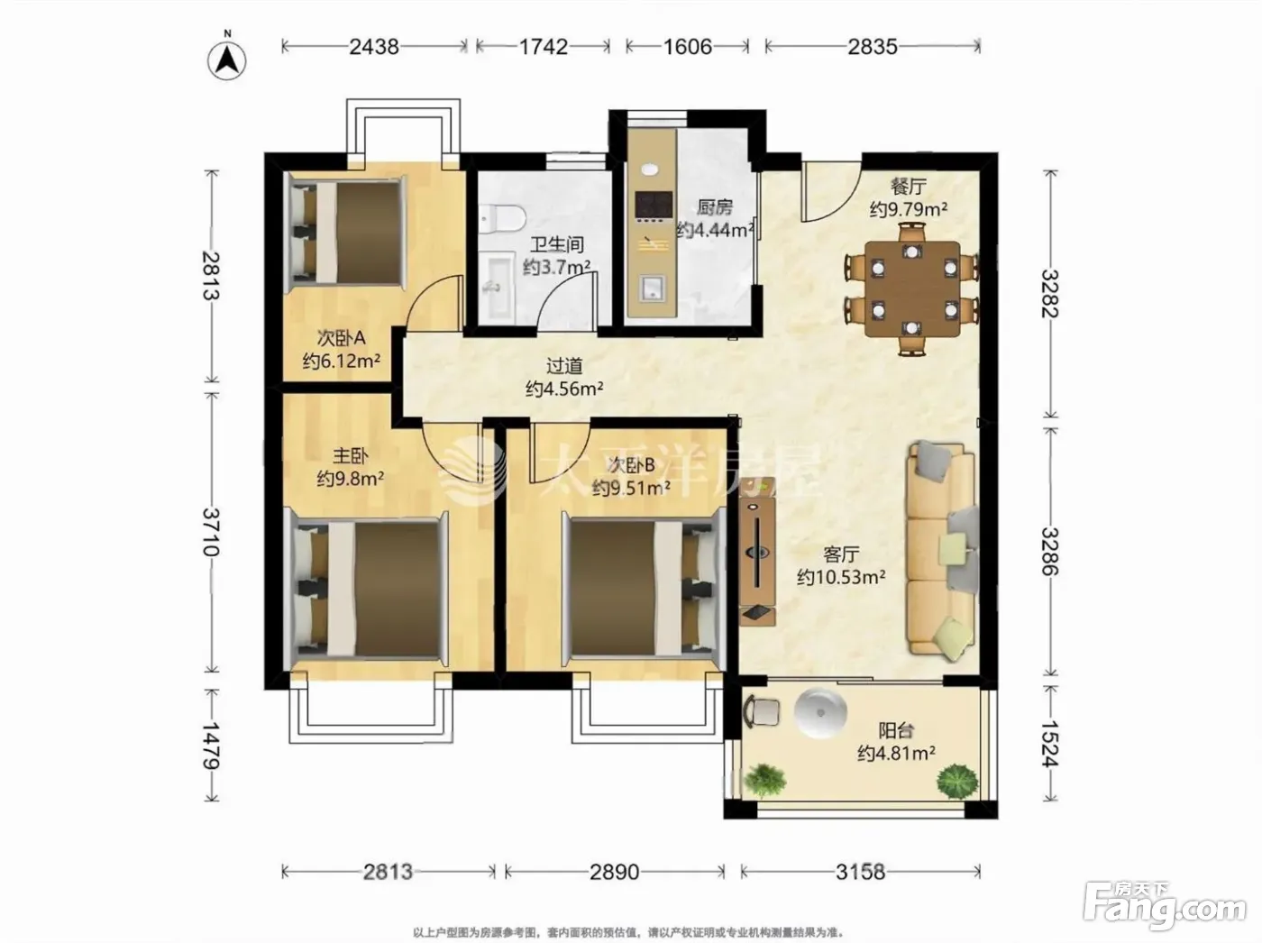 户型齐全,主打户型方正,明厨,明卫,双卧朝南,主卧朝南三居