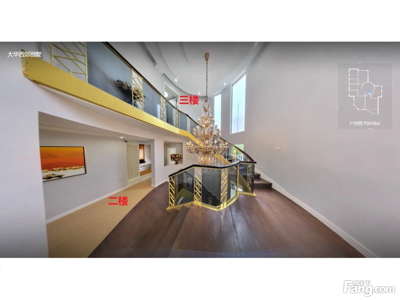 大华西郊 产证登记建筑面积约418.39平,总计实用建筑面积5百多平,有很多个露台 独栋 精装 全屋中央空调+地暖 保养非常好 地上284.66地下133.34 占地433.39平 1楼 东进门 没有做卧室 2楼 北端有1个套房 南端是2个套房,有1个书房是西向采光 赠整层3楼一百多平 北临小溪 == 大华西郊别墅:上海市青浦区高泾路358弄 位于别墅云集的徐泾高泾路别墅区,距离虹桥商务中心仅3公里,周边国际xue xiao云集,随着虹桥商务区的大力发展,周边配套设施日趋完善。 小区里每幢别墅力求根据其位置建造“稀有户型与稀有风格的”别墅,现代经典风格、欧式城堡、地中海风情等多种建筑风格交汇,400-1000平米朝南花园、多庭院多露台 社区内部三条自然水系,蜿蜒千米的河岸线,三座绵延至平原的山坡,将整个别墅区划分成森林、原野、环岛、丘陵、山谷五大主题景观。 开发商:大华集团上海京郊房地产有限公司 狮城怡安(上海)物业管理有限公司 物业费:4.2元/㎡/月 容积率:0.3 绿化率:50% 小区分三期共125幢纯独栋别墅(均为地上两层,地下一层,赠整层三楼),分三期开发,栋距开阔,环境优雅 建筑面积段:270-699平米 一期2008年至2010年,10号-33号,51-71号,90号,92号,共41户, 二期2009年至2011年,72号-89号,91号,100号-116号,共31户, 三期2011年至2013年,2号-9号,18号,93号-99号,117号-170号,共56户。 主力户型: F1户型:394.52㎡户型地上 270.91㎡地下123.61㎡ P1户型:421.77㎡户型地上288.04㎡地下133.73㎡ D1户型:453.27㎡户型地上322.73㎡地下130.54㎡ C1户型:522.09 ㎡户型地上 351.7㎡地下170.39㎡ 398.08㎡户型地上304.35㎡地下93.74㎡ 500.84㎡户型地上320.80平地下180.04㎡ 426.91㎡户型地上291.13㎡地下135.78㎡ 398.49㎡户型地上266.33㎡地下132.16㎡ 443.53㎡户型地上306.07㎡地下137.46㎡ 457.74㎡户型地上326.81㎡地下130.93㎡ 525.46㎡户型地上320.13㎡地下205.33㎡ 608.13㎡户型地上 397.01㎡地下211.12㎡ 部分房源是业主扩建了整层三楼(层高约3米) 2号线徐泾东站与蟠祥路站、17号线蟠龙路站 公交: 776路、徐泾2路、 上朱线、706路 自驾:沪青平公路(G318)、沪渝高速、沈海高速、延安路高架、嘉闵高架、S20外环高速、淞泽高架等出行便利