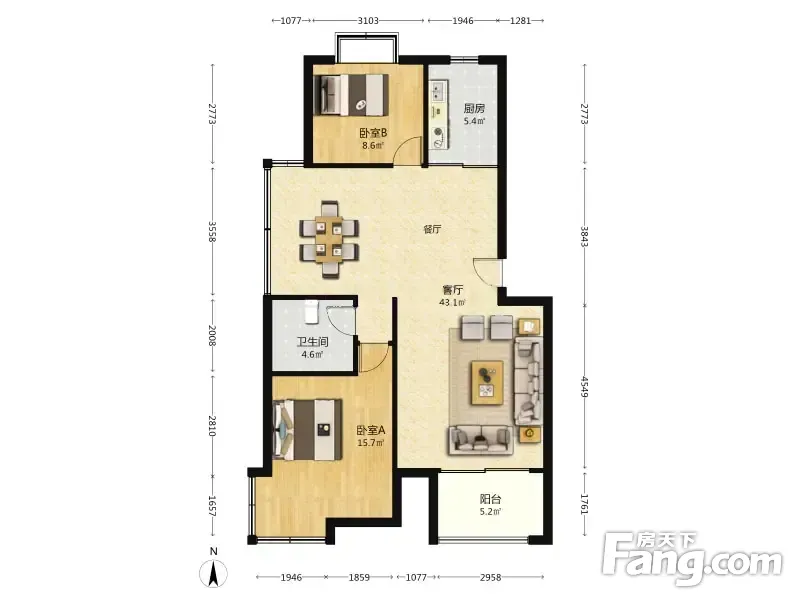 户型齐全,主打户型方正,明厨,明卫,主卧朝南二居