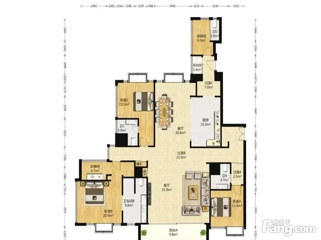 房屋拥有相对宽松的尺寸,布局通透,动静分离,设计豪华