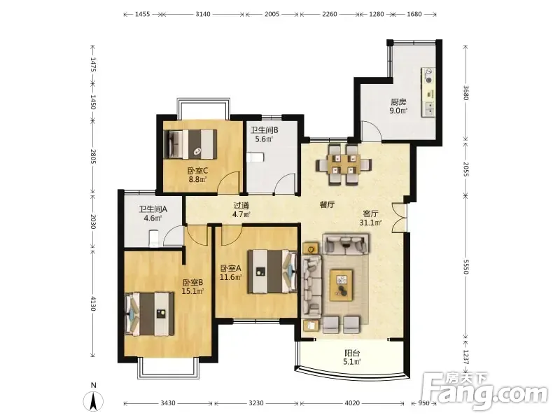 3室2厅1卫