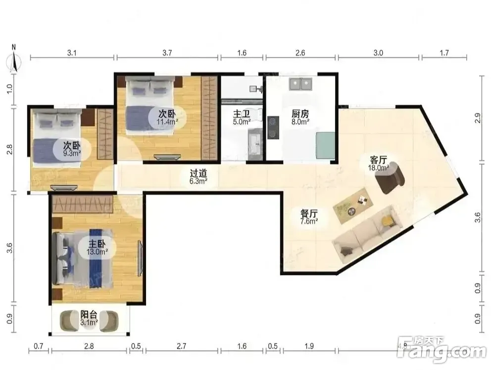 3室2厅1卫