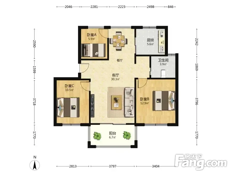 3室2厅1卫