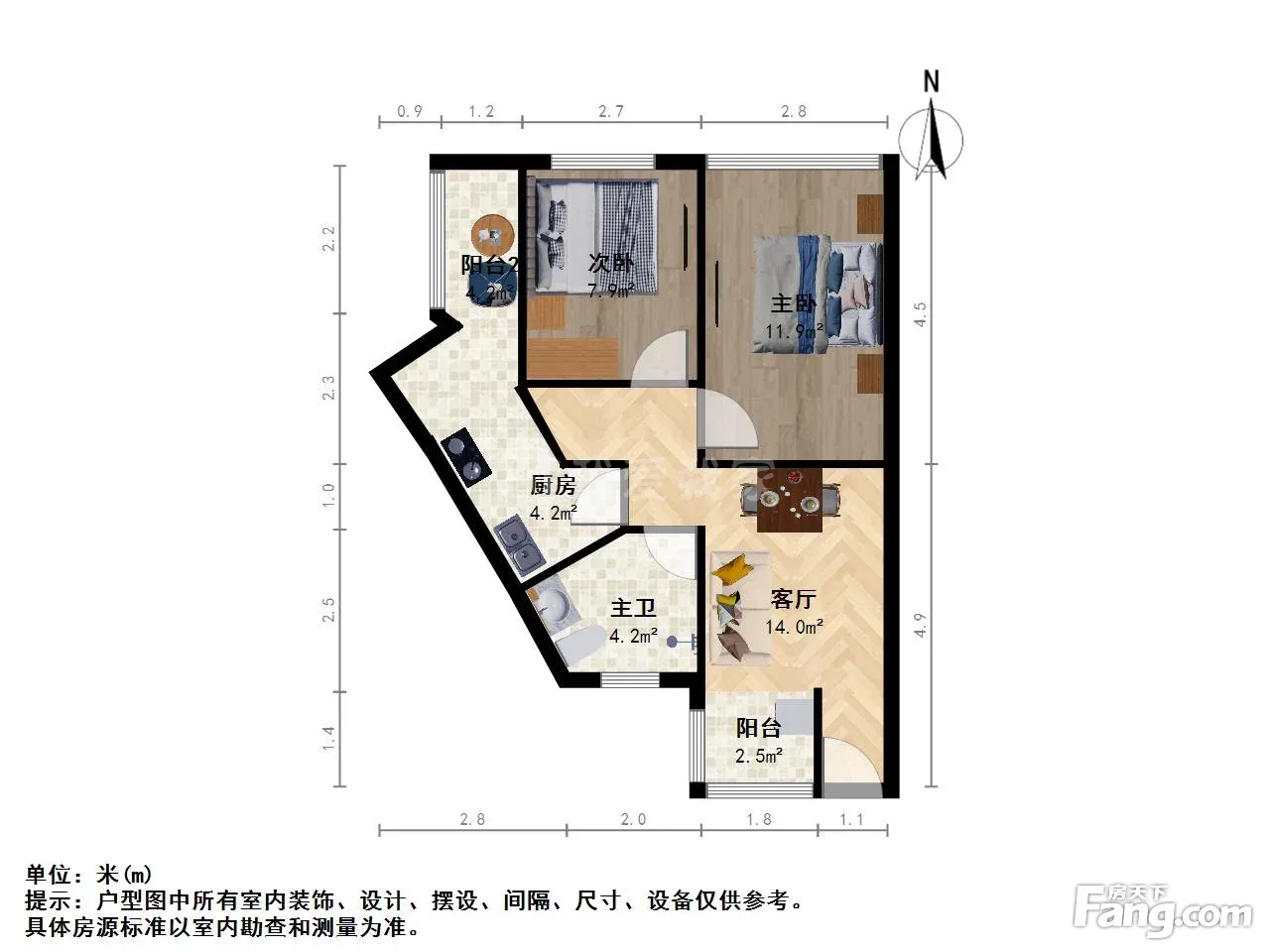 户型齐全,主打明卫,客厅朝南,双阳台二居