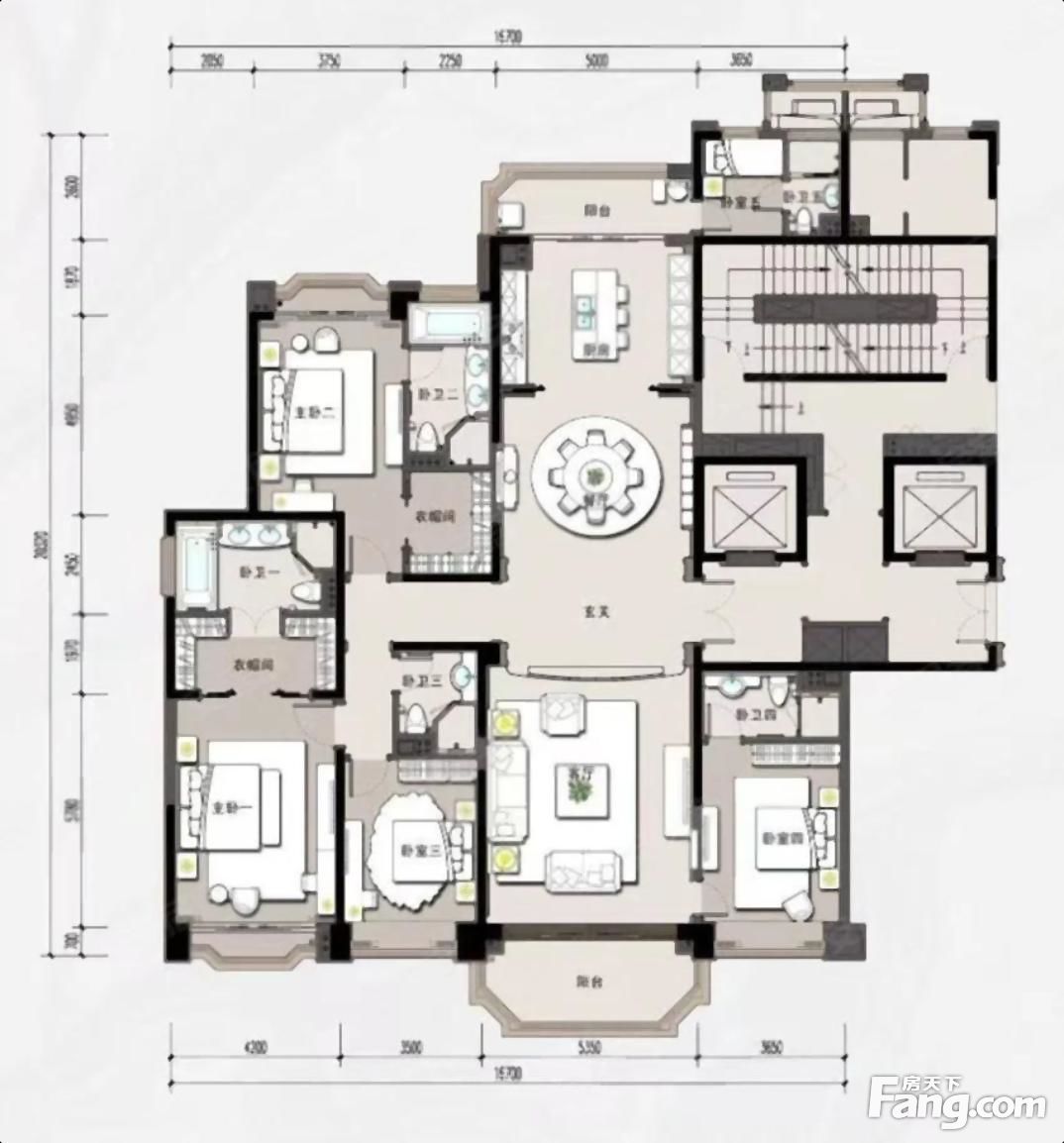 户型齐全,主打主卧带卫,带衣帽间五居