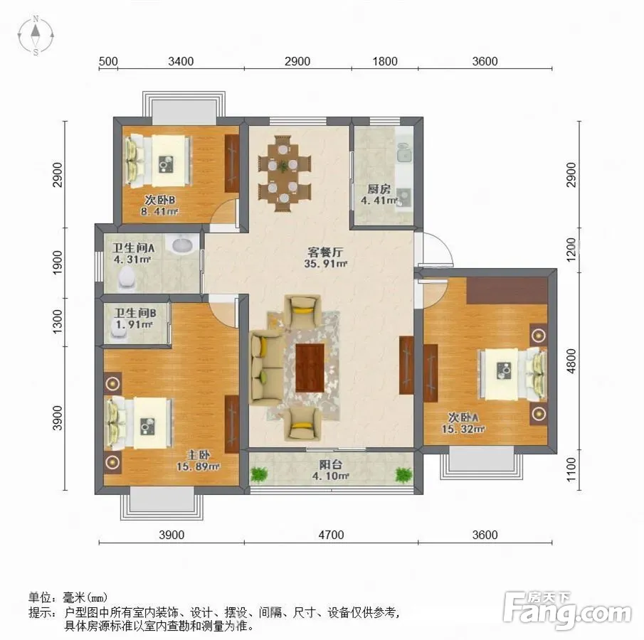 户型齐全,主打户型方正,明卫,明厨,客厅朝南,全明格局,双卧朝南三居