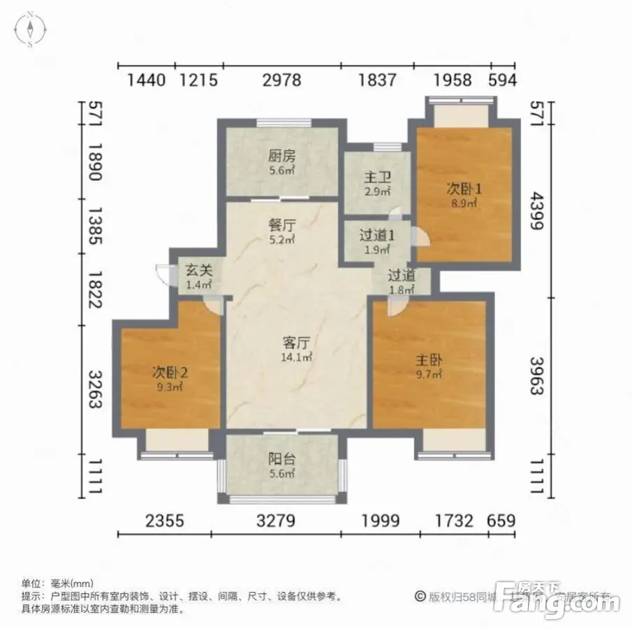 户型齐全,主打南北通透,客厅朝南,卧室朝南三居