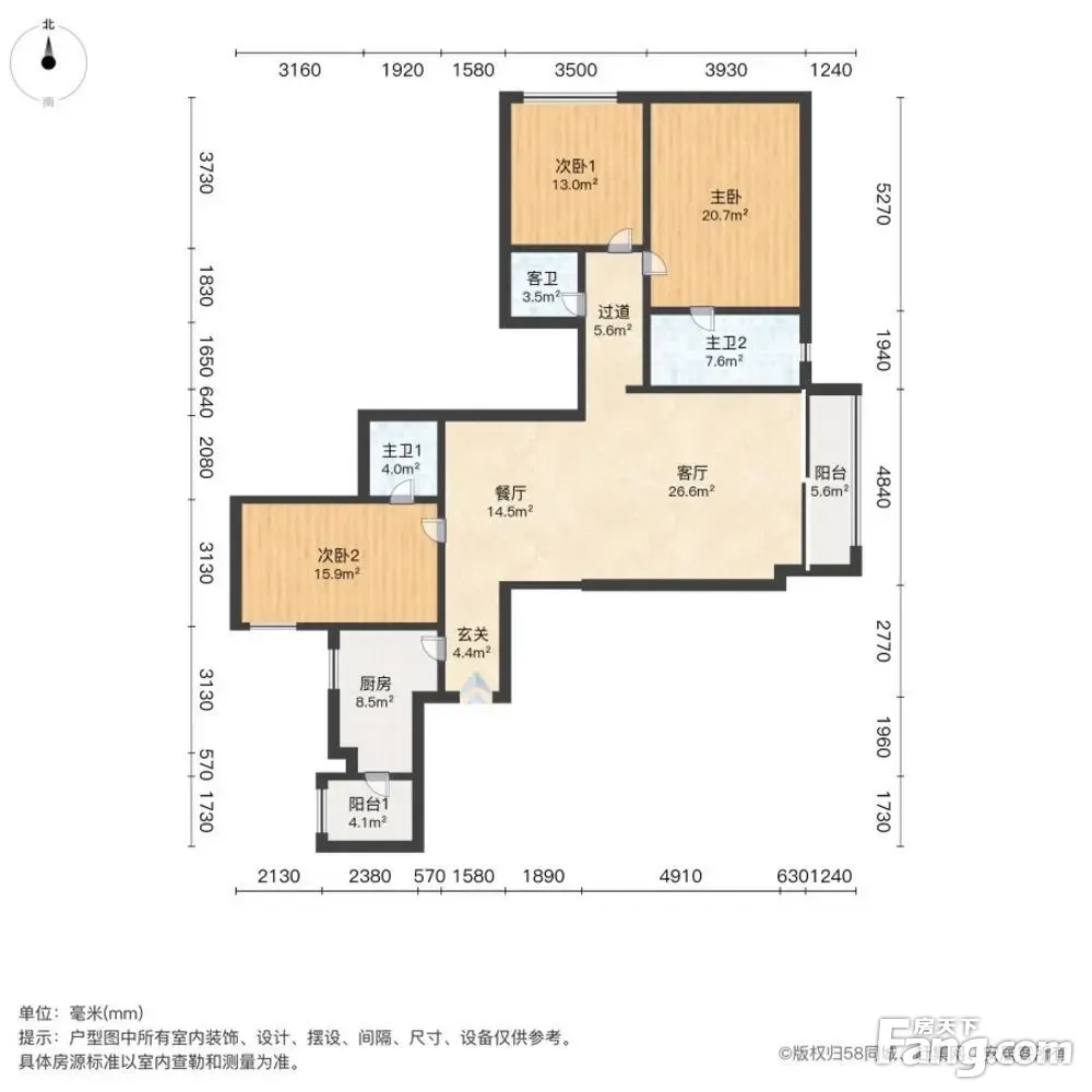户型齐全,主打客厅朝南,卧室朝南三居