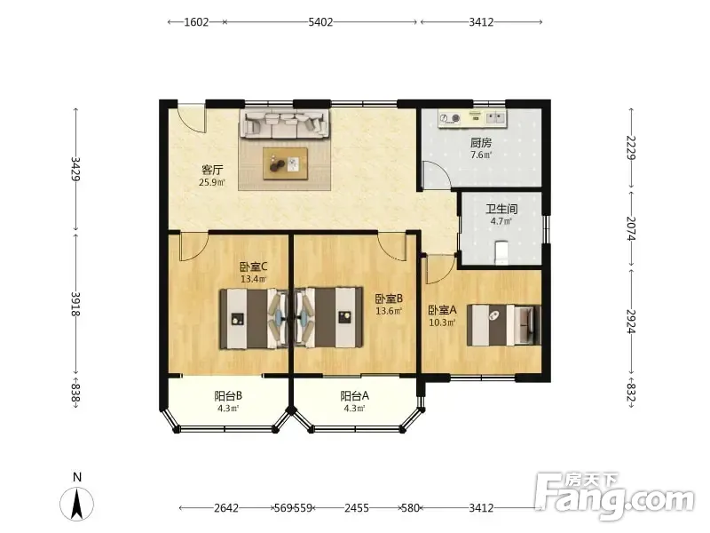3室2厅1卫