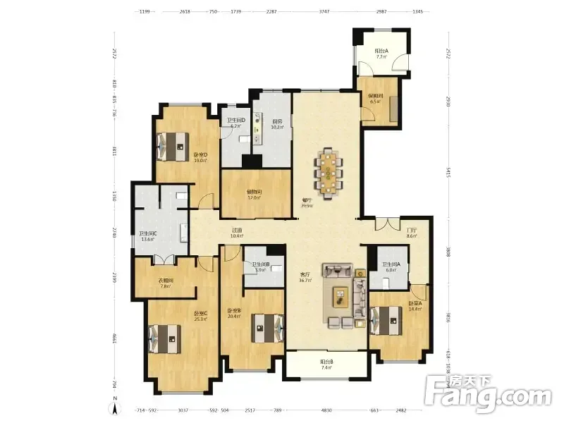 房屋拥有相对宽松的尺寸,布局通透,动静分离,设计豪华