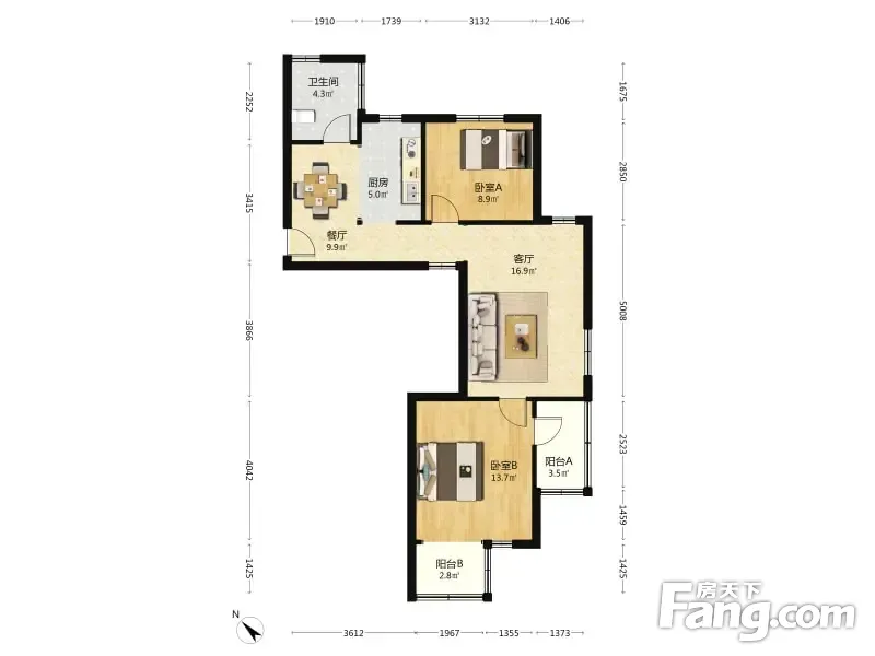 名人花苑 2室1厅 75.93平