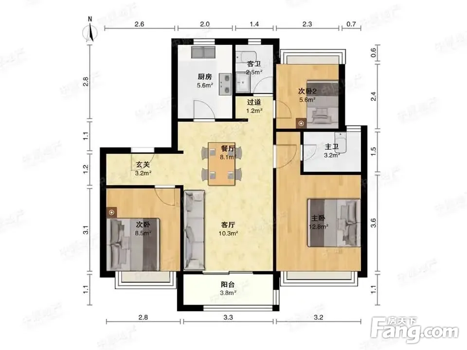 户型齐全,主打客厅朝南,卧室朝南三居