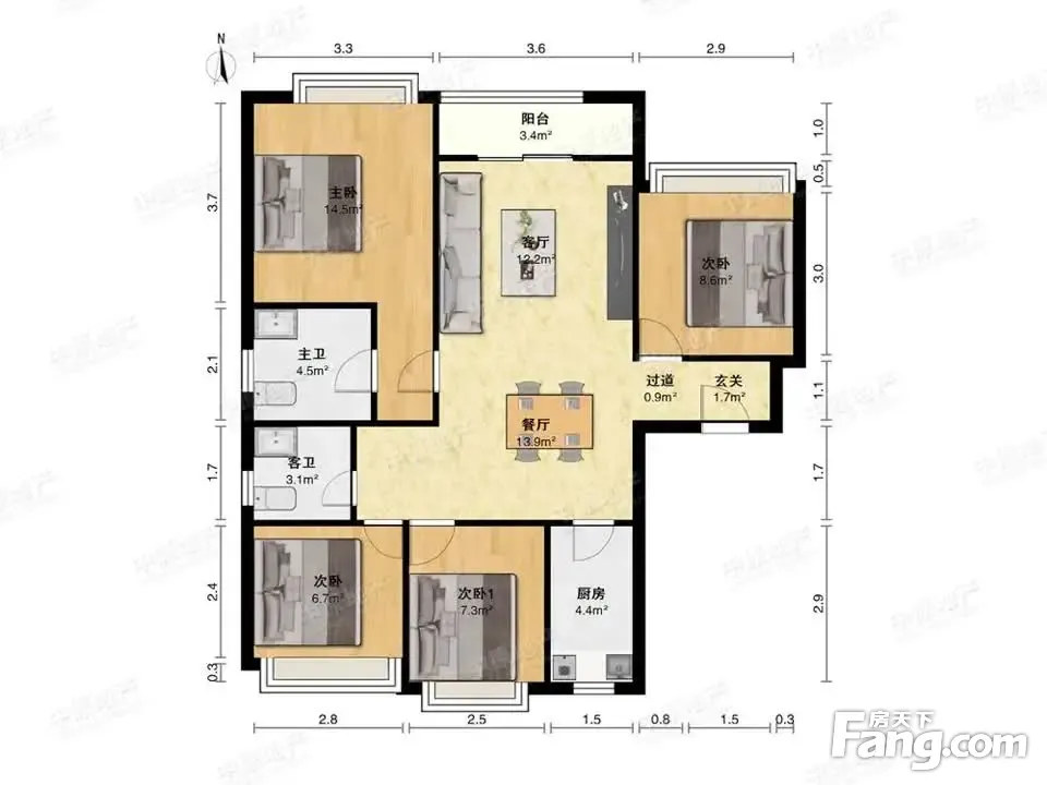 户型齐全,主打客厅朝南,卧室朝南三居