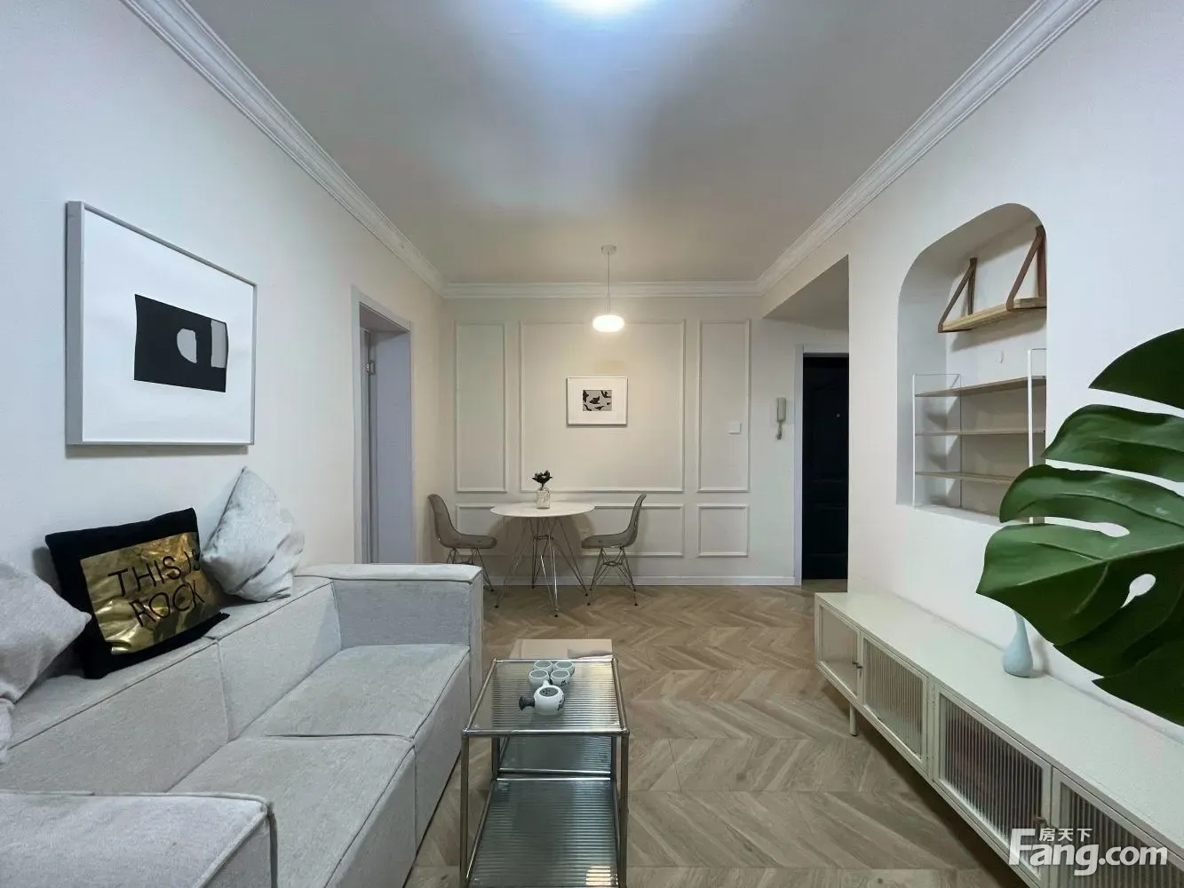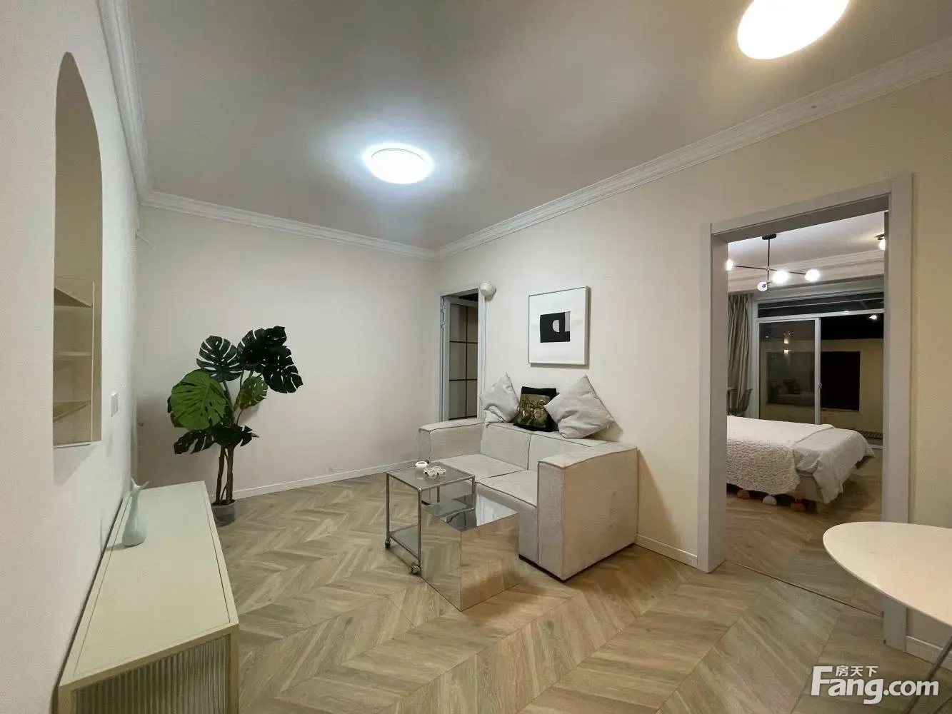 □特殊情况□ 房东是2021年刚装修好,味道晾了5个月了,刚住进去1年,但看中一套性价比很高的商品房,故换房; □房屋分析□ 58.75平,2房1厅1卫;全屋地暖,所以卧室装的复合实木地板,厅用的瓷砖;35万百安居简约风格装修;全屋灯具是德国进口的; ①厅: 厅整体呈现白灰风格,用的是淡黄色的意大利进口瓷砖,厅共有9平朝南; ②卧: 2个卧室整体呈现暖黄色风格,背景墙是灰色的; 主卧有15平朝南带4平阳台,宜家的简约白床和蓝色沙发,橱柜也是品牌的; 朝北次卧有10平,也是宜家床和品牌橱柜; 卫生间朝北,有3个平方; 厨房有3平朝南, 主要自带25平花园