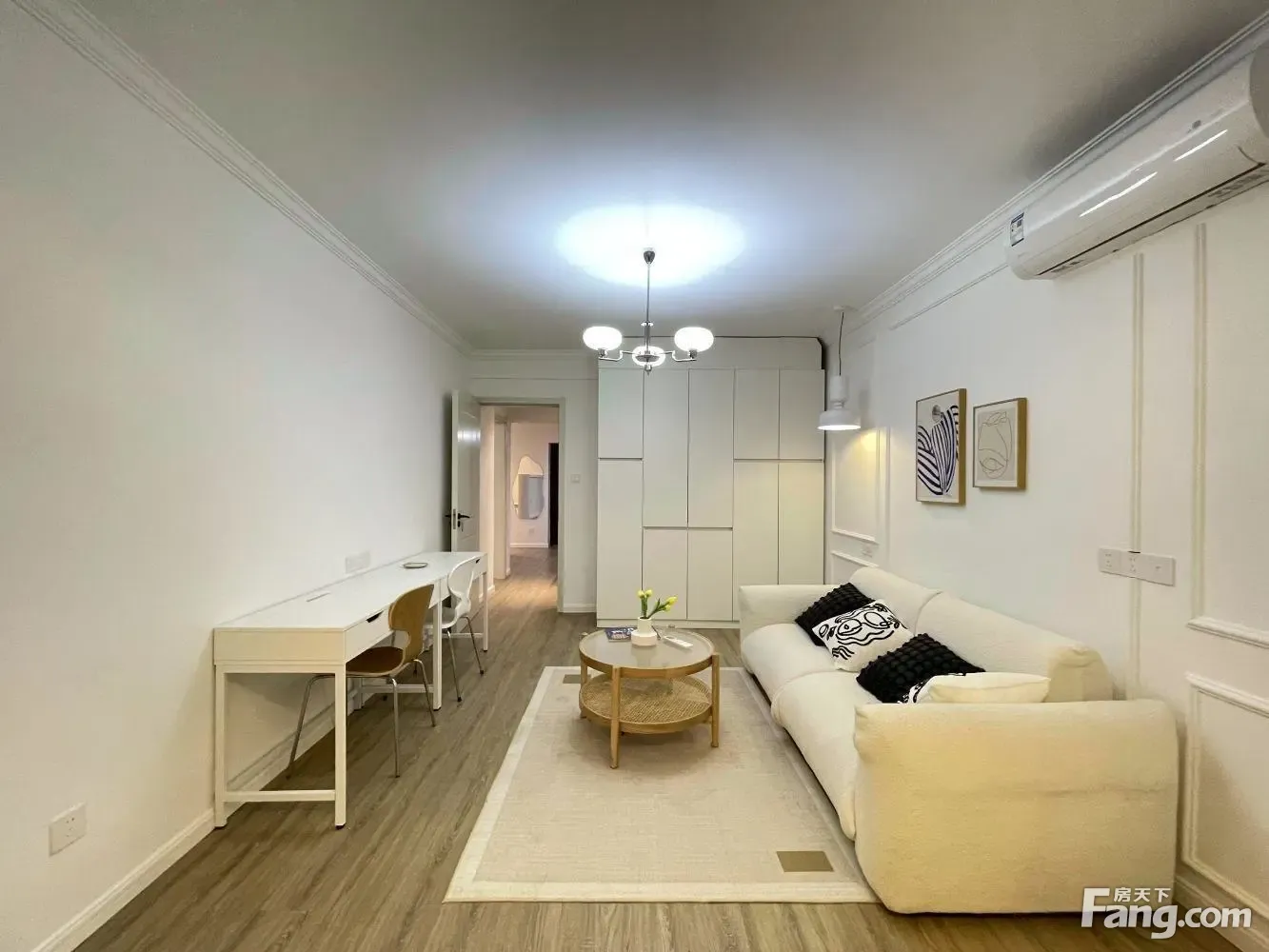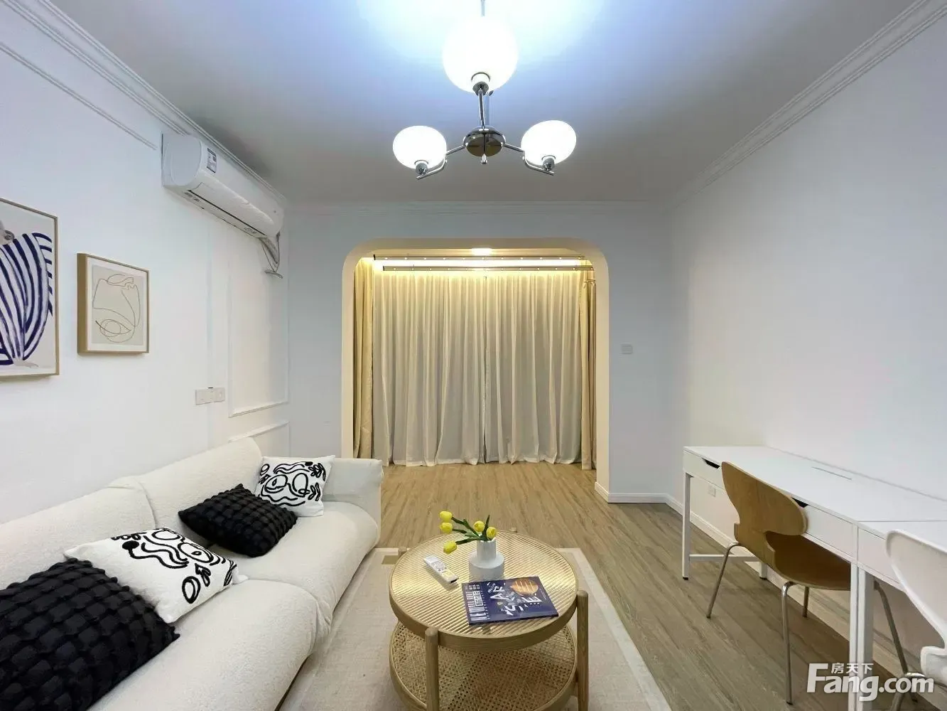 □特殊情况□ 房东是2023年刚装修好,味道晾了5个月了,现在看中一套性价比很高的商品房,故换房; □房屋分析□ 产权面积66.81平,2房1厅1卫;全屋复合实木地板;35万百安居简约风格装修;全屋灯具是德国进口的; ①厅: 厅整体呈现白灰风格,厅共有13.8平朝东与厨房做了一个吧台隔开; ②卧: 2个卧室整体呈现暖黄色风格,背景墙是白色的; 主卧有14.6平朝南带4平阳台,现做厅在使用,定制沙发座椅,进口吊灯; 朝南次卧有11.7平,也是宜家床和品牌白色橱柜; ③厨卫: 卫生间朝东,有3.9个平方做了干湿分离; 厨房有5.5平朝南,房东不做饭几乎全新; 主要自带31平花园! ④送固定车位!