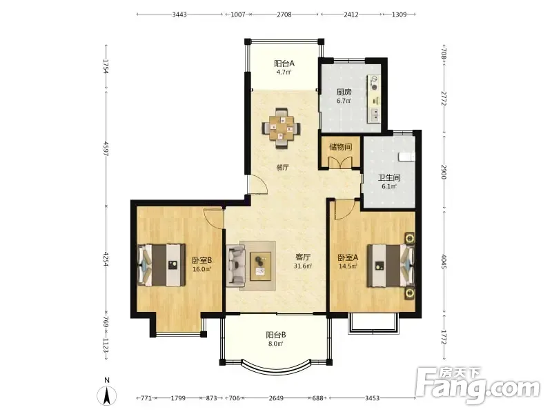 户型齐全,主打户型方正,明卫,明厨,主卧朝南,独立衣帽间二居