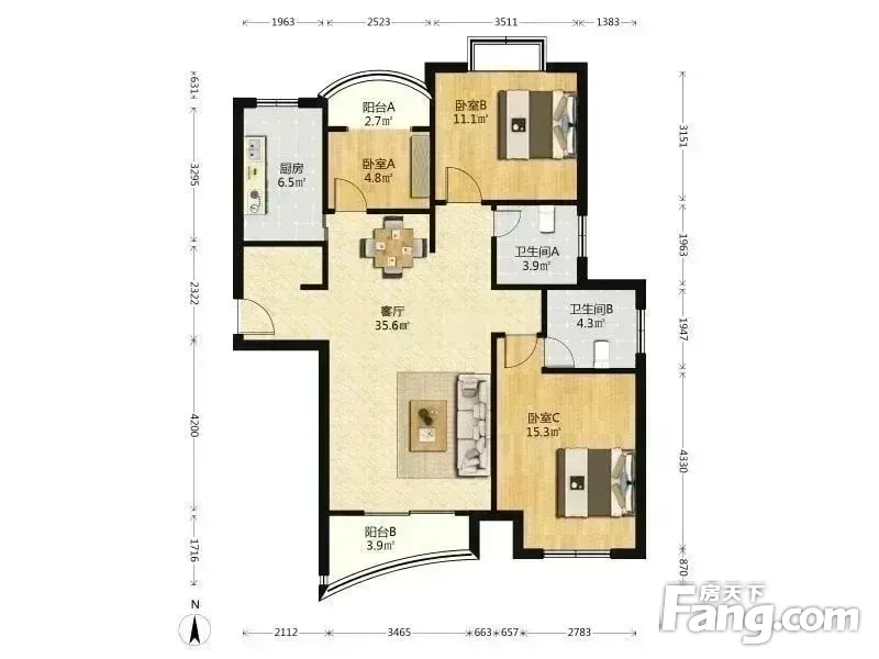 户型齐全,主打户型方正,明厨,明卫,客厅朝南,双阳台,主卧朝南三居