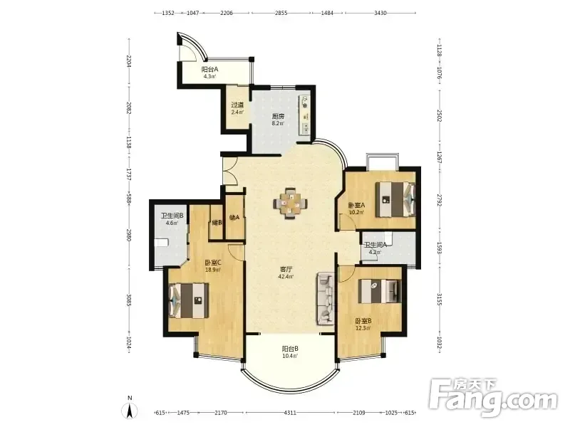 房屋拥有相对宽松的尺寸,布局通透,动静分离,设计豪华