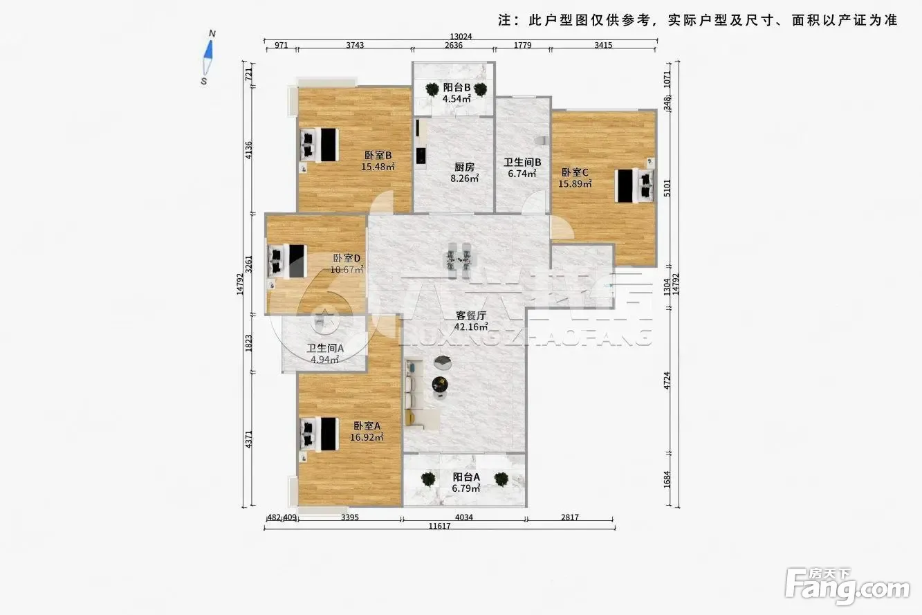 户型齐全,主打南北通透,户型方正四居