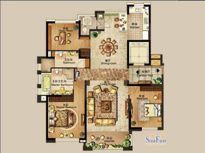 房屋拥有相对宽松的尺寸,布局通透,动静分离,设计豪华
