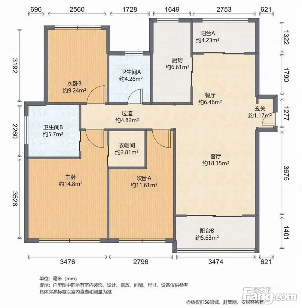 户型齐全,主打户型方正,明卫,明厨,独立衣帽间,双阳台,双卧朝南,主卧朝南三居