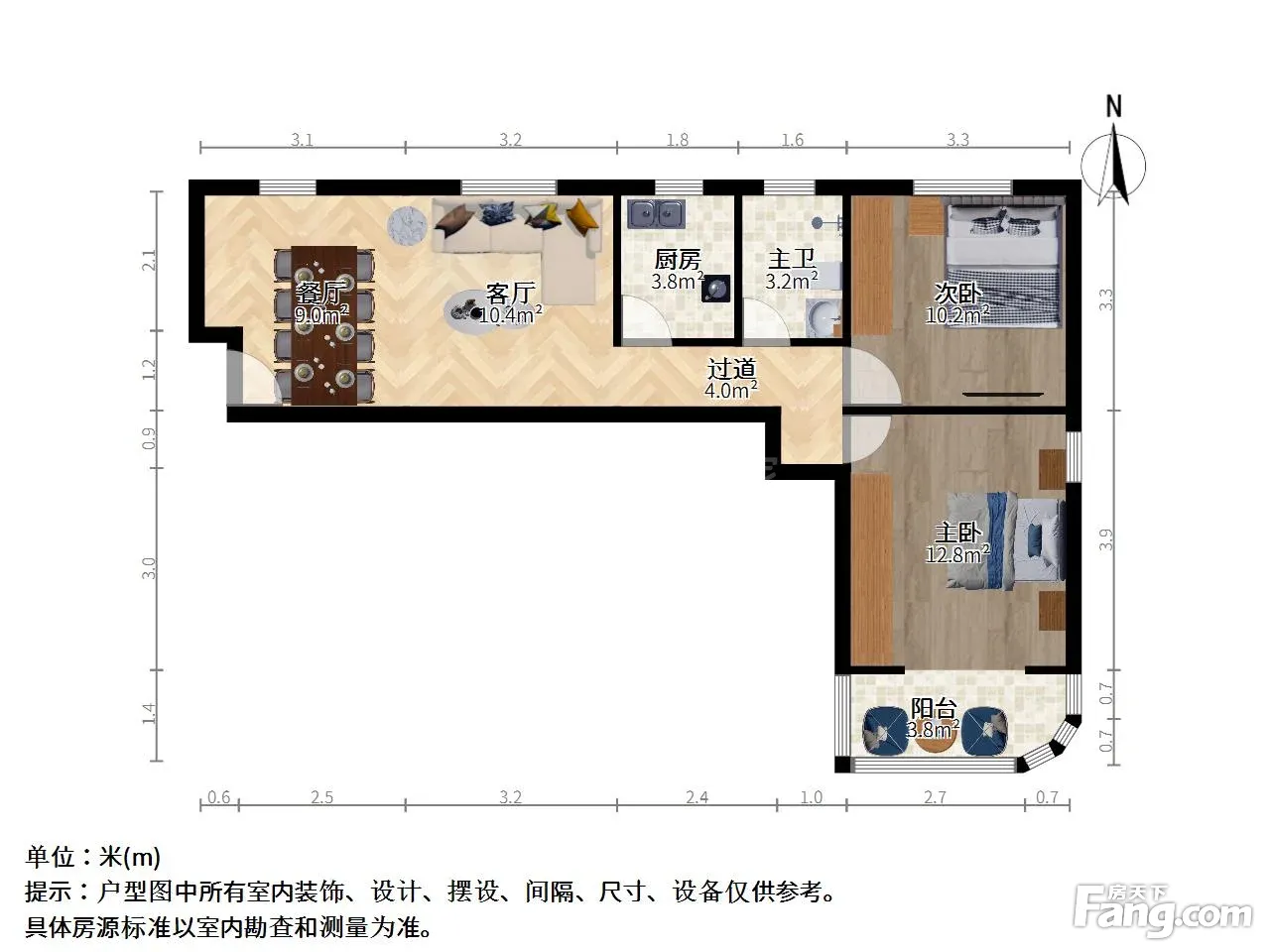 户型介绍:此房户型为2室2厅1卫,建筑面积为90.2平米,朝向为南北通,主卧朝南带阳台,次卧朝北有窗户,厨房朝北有窗户,卫生间朝北有窗户,边套全明户型,通风采光都很好,