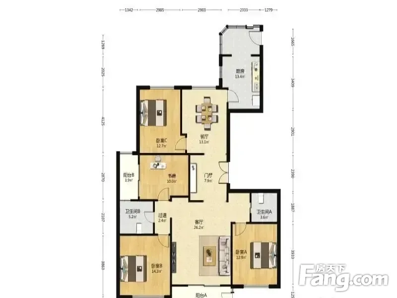 房屋拥有相对宽松的尺寸,布局通透,动静分离,设计豪华