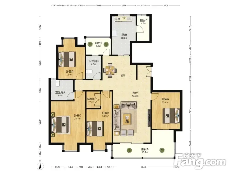 房屋拥有相对宽松的尺寸,布局通透,动静分离,设计豪华