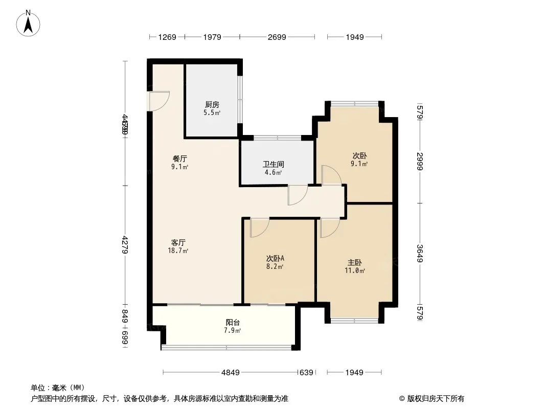 户型齐全,主打南北通透,全明格局三居